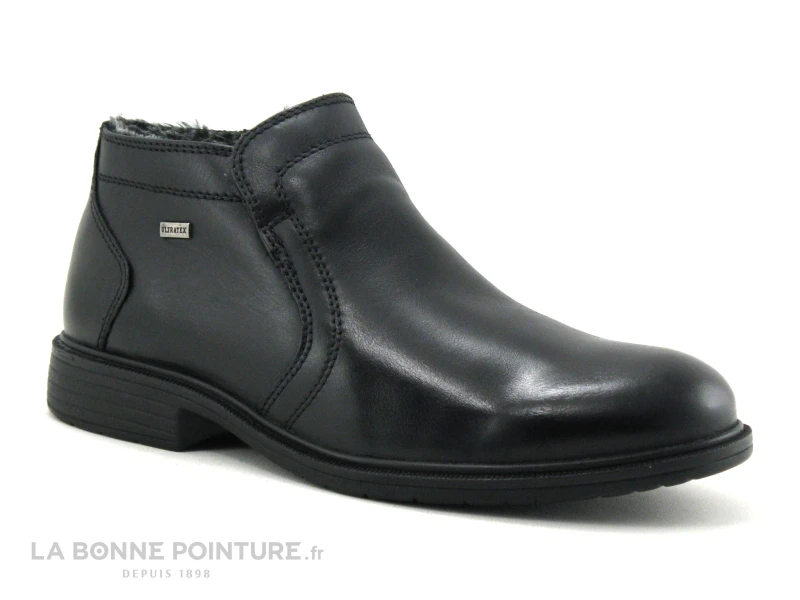 Ce bottillon semi montant Homme est en cuir lisse noir, revĂŞtu d’une membrane impermĂ©able Ultra Tex.