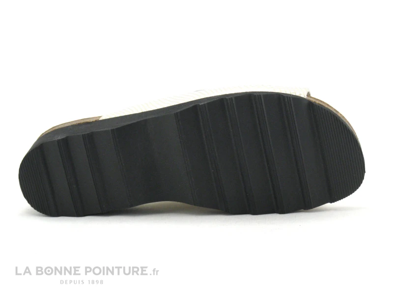 La marque française de chaussures confort Artika propose avec succès depuis des années cette paire de mules Artika Gadin, en cuir beige verni effet serpent, bien souple et de qualité.