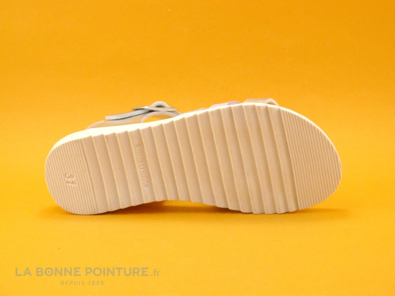 Ce ravissant nu-pieds fille Autenti 6811670 combine des lanières argent, violet et pailletées.