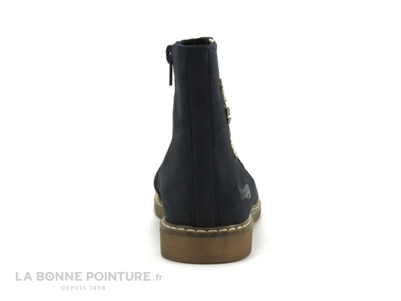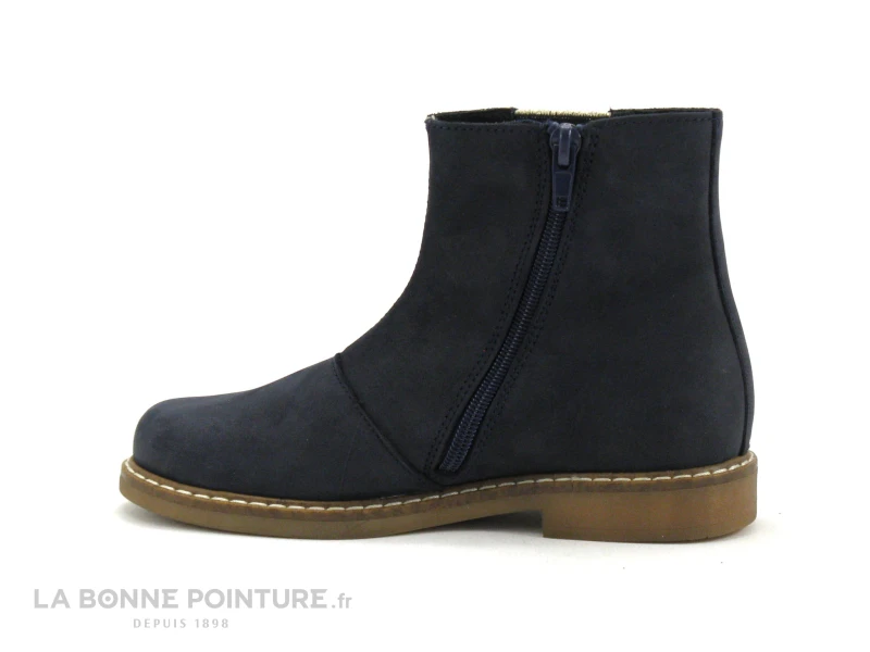 Ces belles bottines fille Bopy Safalou sont en cuir velours bleu marine, avec un oiseau argenté sur le côté externe.