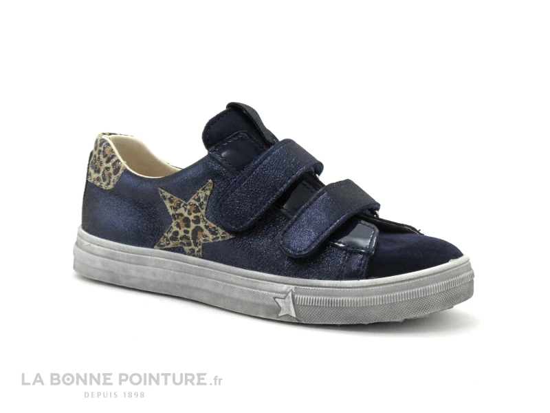 Les baskets basses fille en cuir bleu marine Bopy Sardivel, des sneakers brillantes et tout en cuir pour les fillettes à la mode !