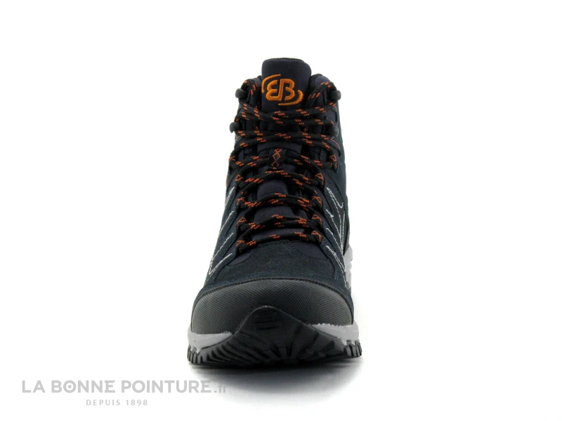 Cette basket rando Homme combine textile et matières synthétiques résistantes bleu marine et orange.