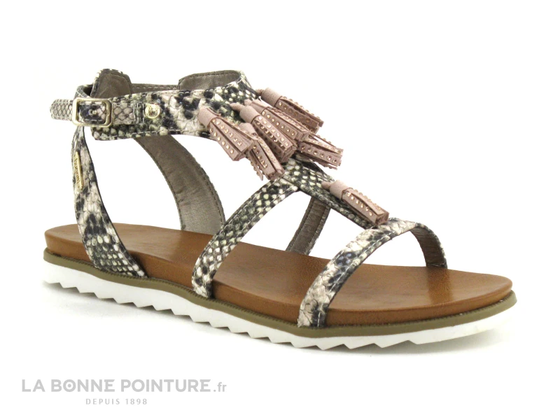 Un imprimé python et des pompons à franges pour mettre en valeur vos petits pieds cet été avec ces ravissantes sandales Bugatti Jodie !