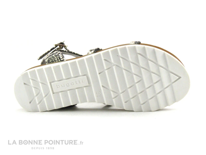 La semelle de marche des sandales Bugatti Jodie est lĂ©gère et crantĂ©e, dotĂ©e d’un petit talon d’environ 2.5 cm.