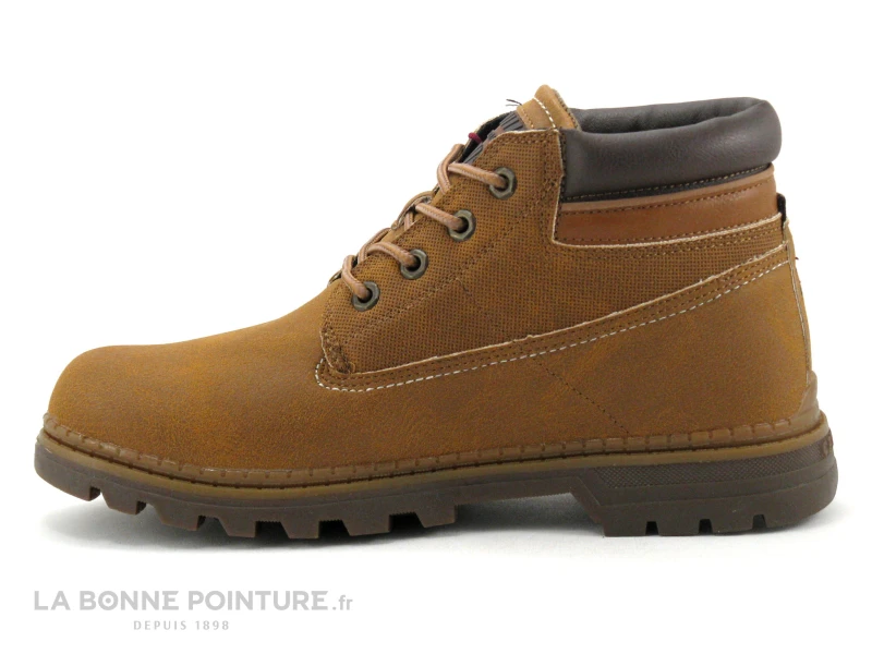 Cette chaussure montante Homme est en simili cuir marron clair nuancĂ©, Ă l’aspect veloutĂ©.