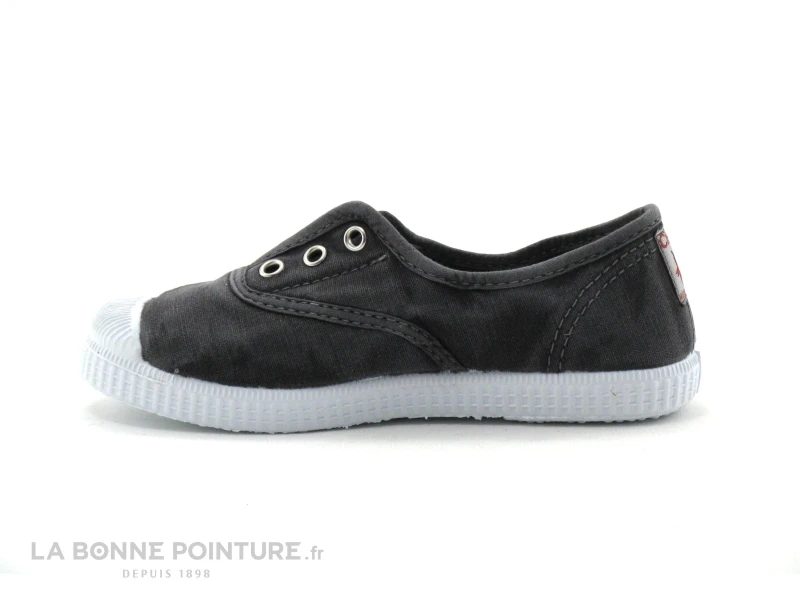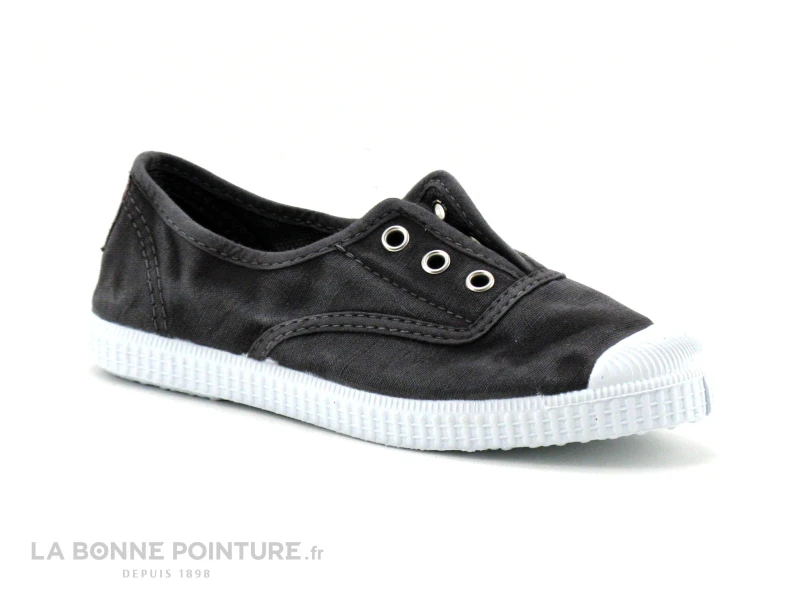 Cette basket enfant est en toile noire grisĂ©e, fabriquĂ©e avec des matĂ©riaux Ă©cologiques pour prĂ©server l’environnement et bĂ©nĂ©ficiant de la certification Green Trade World.