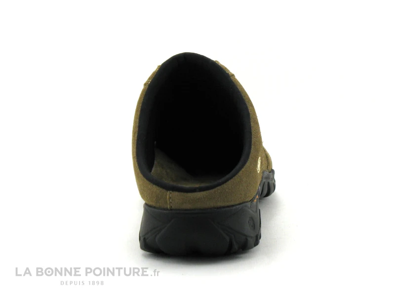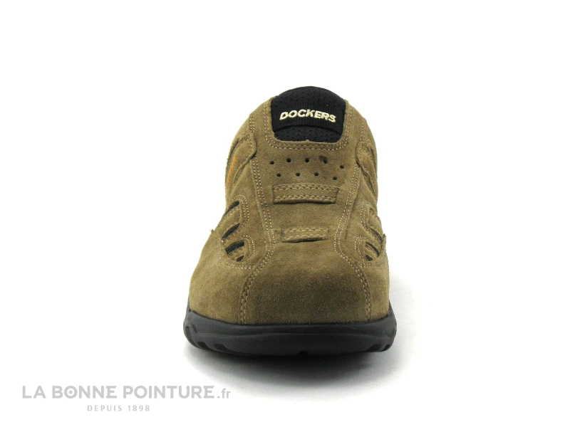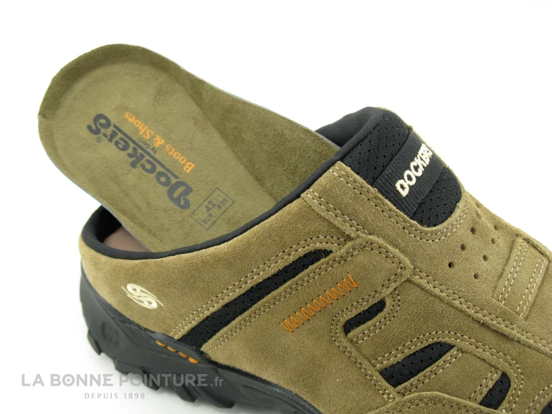 Cette mule Homme Dockers est en cuir velouté beige foncé, avec un peu de noir.