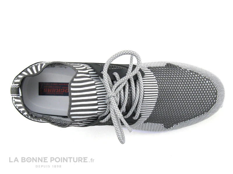 Ces sneakers en maille Dockers by Gerli 44SS002 sont en maille grise et blanche, avec des renforts gris sur les cĂ´tĂ©s et Ă l’arrière.