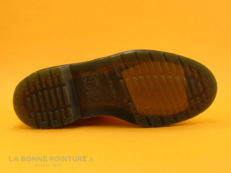 La semelle de marche aspect translucide est robuste avec montage Goodyear et surpiqures jaunes, épaisse d’environ 3.5 cm au talon.
