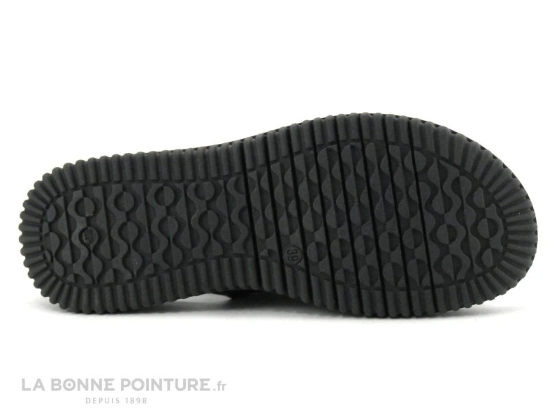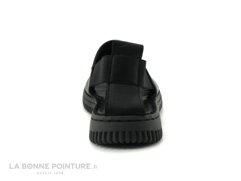 Ce nu-pieds souple Femme est composé d’un large bandeau en cuir lisse noir, associé à deux élastiques sur les côtés qui permettent d’enfiler la chaussure en un clin d’oeil.