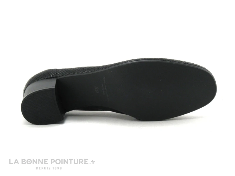 La semelle de marche de l’escarpin Folie’s Maho noir est souple, et le talon mesure environ 5 cm de hauteur, épais et ainsi bien stable.