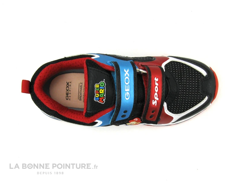 Dans la cour de récré, tous les copains les voudront ces baskets basses Géox Super-Mario j1644A ANDROID noir-bleu- rouge!
