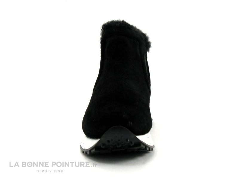 Cette bottine mode Femme Gioseppo Jondal est en cuir velouté noir, avec deux élastiques sur les côtés qui permettent d’enfiler facilement la chaussure.