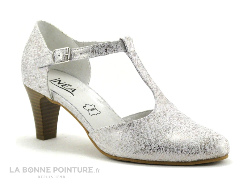 Les escarpins blanc et gris métal Inéa Guss avec bride, des chaussures chics et parfaites pour les mariages, baptèmes et autres cérémonies de la belle saison !