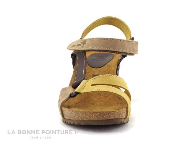 Mode, confort et très bon rapport qualité prix pour ces sandales en cuir jaune et beige / marron Inter-Bios 5610 !