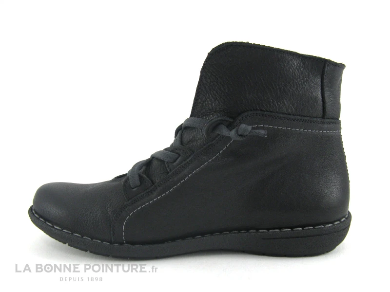 Ces chaussures Femme sont en très beau cuir noir Ă l’aspect grainĂ©. Le lacet Ă©lastiquĂ© et les coutures gris se fondent parfaitement au design de la chaussure.