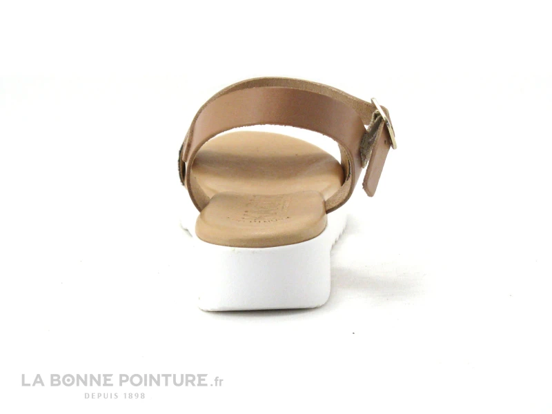 La semelle de la chaussure Kaola contraste en blanc, elle est est lĂ©gère et dotĂ©e d’un talon compensĂ© d’environ 4 cm.