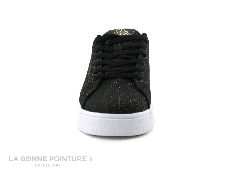 Le lacet plat noir traverse 6 oeillets afin de fermer la basket noire fille Kappa.