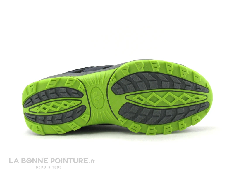 Cette chaussure de sport enfant Lico Fremont est en textile et matières synthétiques résistantes bleu marine et vert lime.