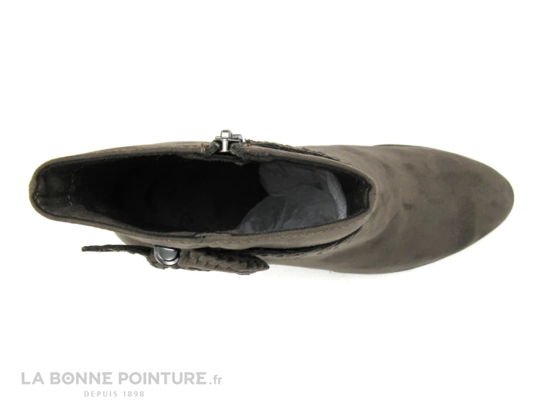 Ces boots mode Femme Marco Tozzi sont en velours marron, avec une bride aspect tressé sur le haut qui ajoute une petite touche de fantaisie au modèle.
