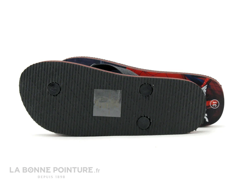 La semelle de marche des claquettes Spiderman est légère, noire avec une ligne rouge sur la tranche.