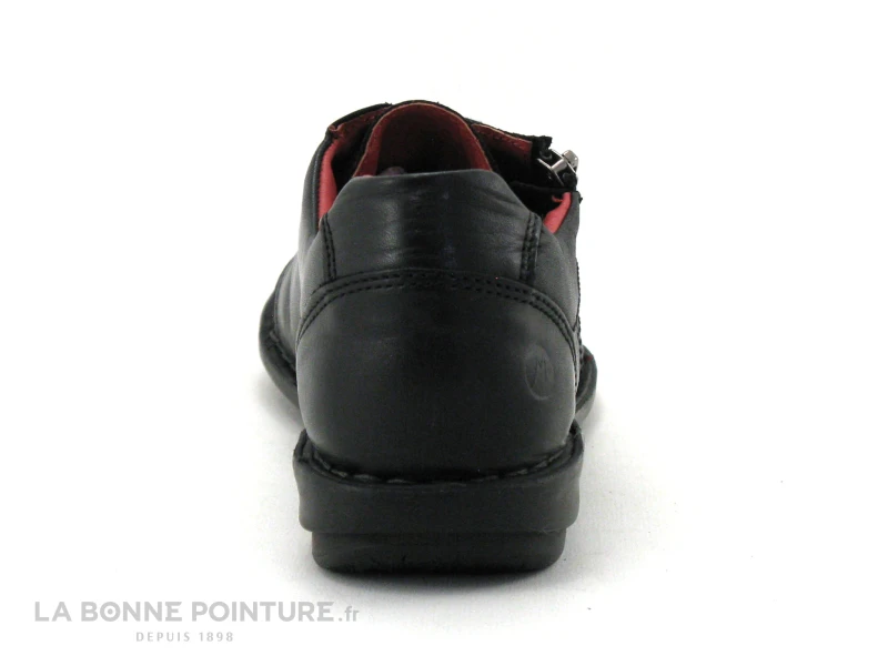 On note que le tour de cheville et la semelle sont matelassés, pour un meilleur confort dans le derbi cuir noir Femme Morans Guillac.