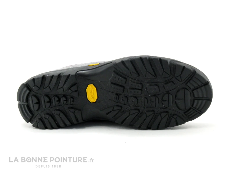 La semelle de marche Vibram est Ă©paisse et crantĂ©e, avec un talon d’environ 3.5 cm.