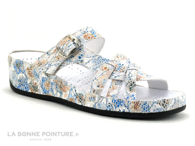 Avec leur semelle emboitante et leur cuir imprimé, voici de belles mules Femme avec bride réglable Pedi Girl Xant !