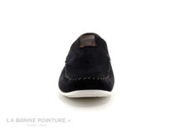 Fermeture des chaussures avec un lacet bleu marine traversant 4 oeillets.