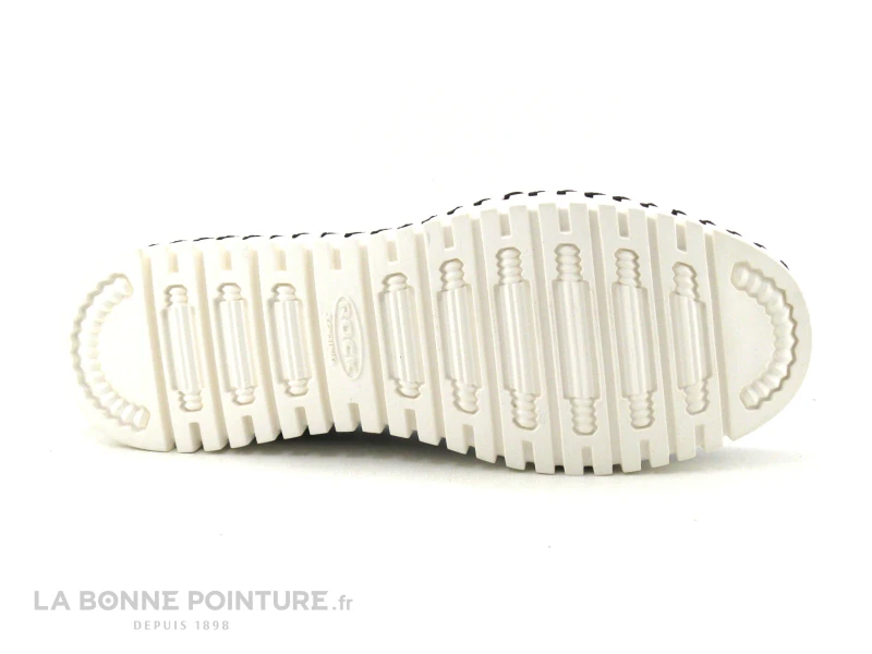 La semelle de marche blanche est compensĂ©e, flexible et très lĂ©gère, avec un talon d’environ 2.5 cm.