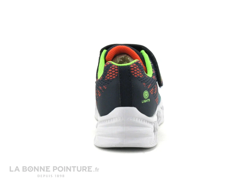 Cette basket garçon Skechers Lights® 400602L est en textile et matières synthétiques bleu marine et multicolore.