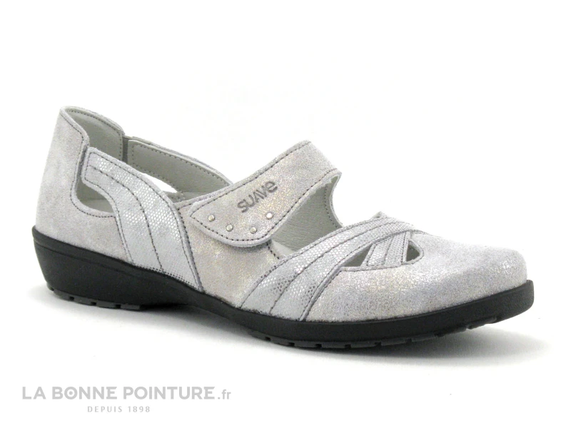 Du grand confort et de la fantaisie avec ces jolies ballerines argent avec bride à scratch Suave London 8061T !
