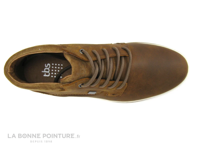 Vous fermerez vos chaussures Homme Tbs avec le lacet arrondi marron clair, passant Ă travers 5 oeillets.